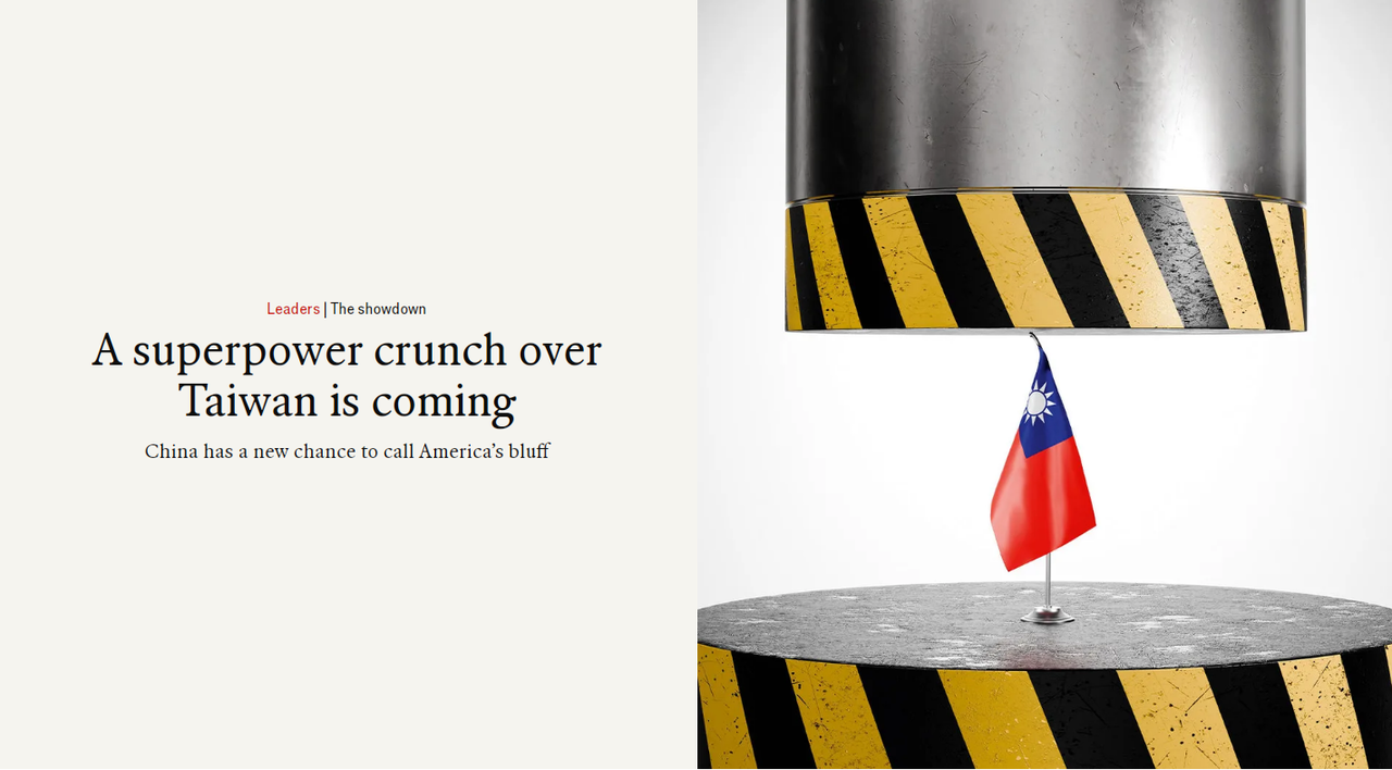《經濟學人》最新封面文章引發熱議,文章示警一場關於台灣的超級大國對決,可能比想像中更快到來。中美關係陷入深度對抗,雙方互相加徵高達100%以上的關稅,科技競賽愈演愈烈,軍事集結頻繁升高。文章認為,台灣極可能成為考驗美國戰略決心的「引爆點」。