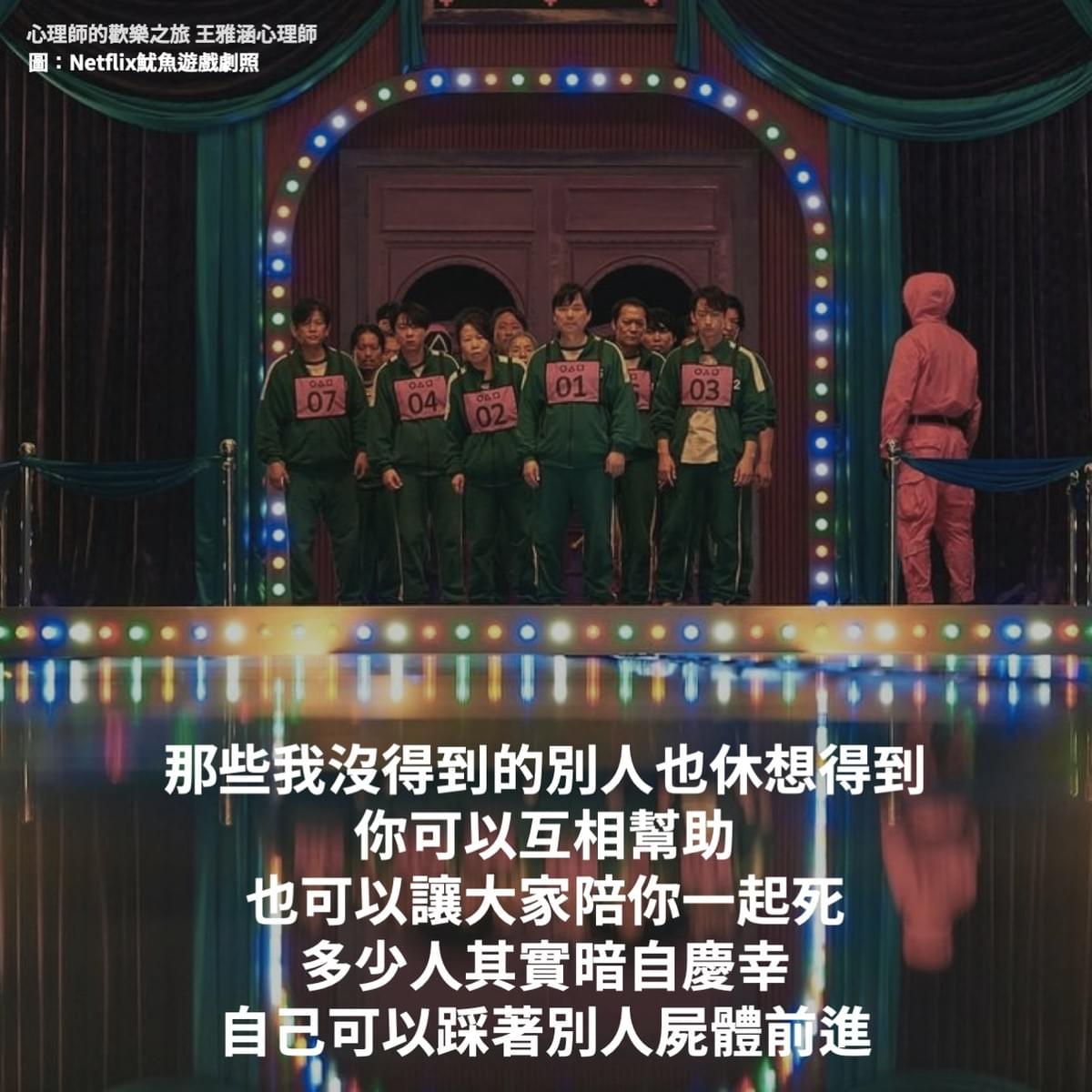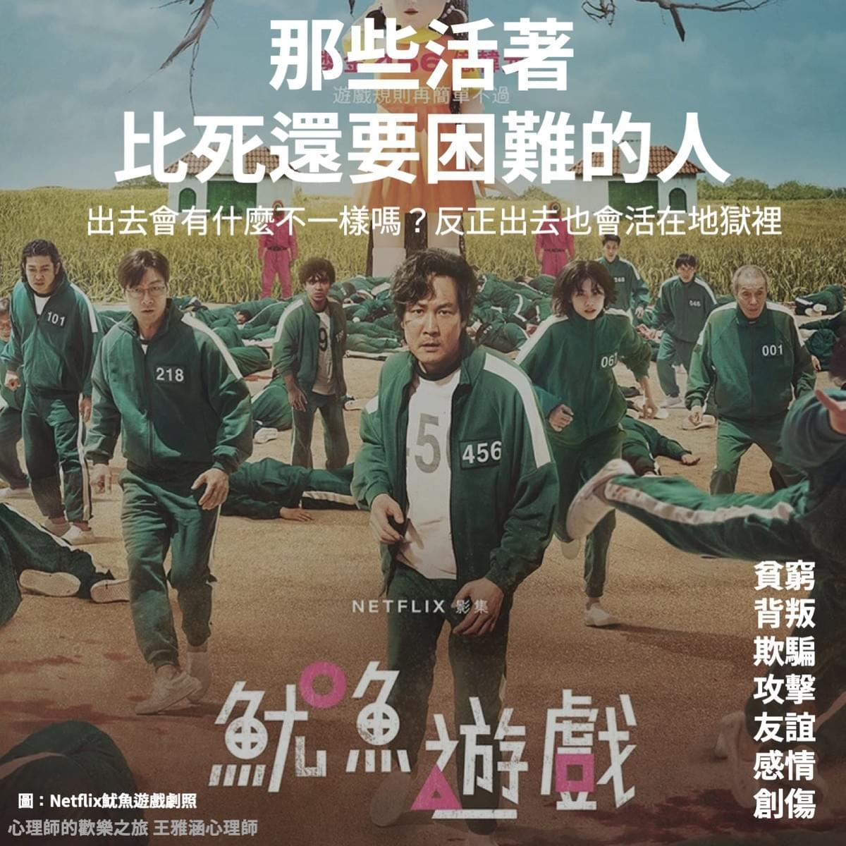這部在探討人心黑暗面的劇,引發了人們許多的反思,深刻的劇情其實除了血腥還虐心,發現很多時候,可怕的不只是沒有理由的現實世界,更可怕的是我們彼此之間的殺戮,劇中的每個人都有自己的故事,都有自己不得已的一面,但他們看似自願的來到遊戲中,像是別無選擇般的,被恩待了最後的一個機會,如果今天是你,會願意參加嗎?