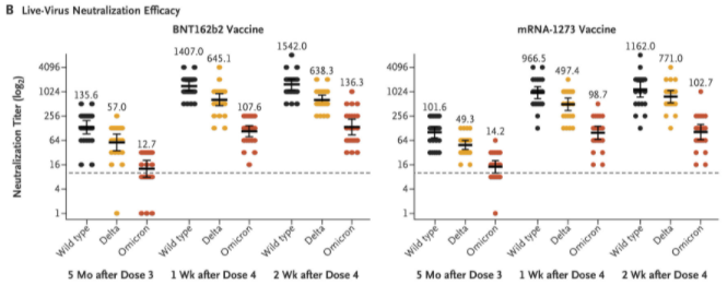 另一項NEJM已發表的研究評估了第四劑在年輕醫護人員中的有效性。他們證實,在第三次給藥後5個月,抗體顯著減少。但是第四劑將它們推回原位。