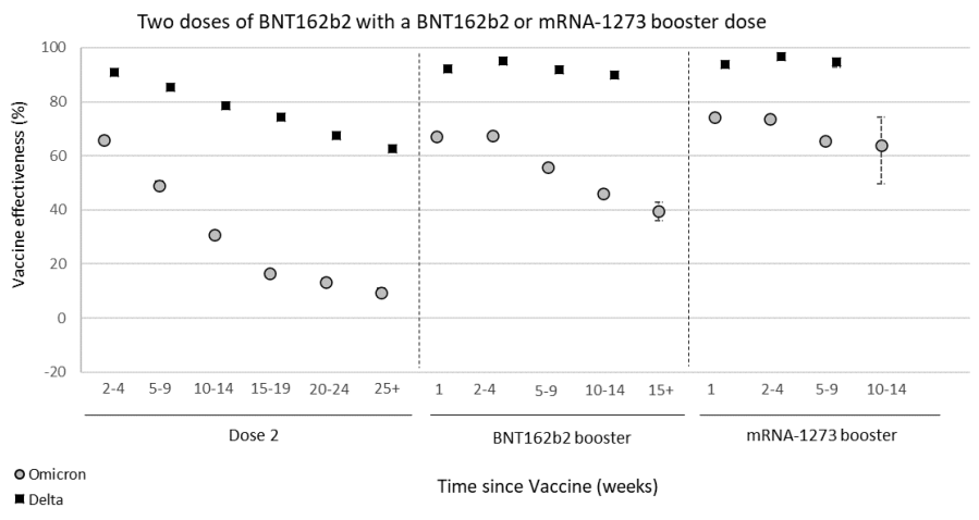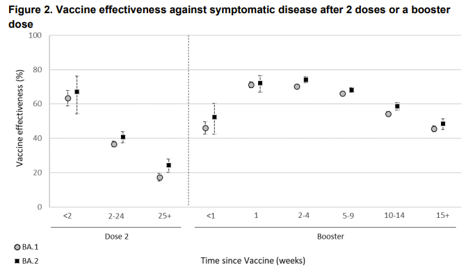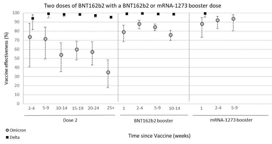 英國安全衛生局公布於3月24日公布,第三劑mRNA疫苗接種後15週內(約略4個月),抗感染保護力確實隨時間減弱。
