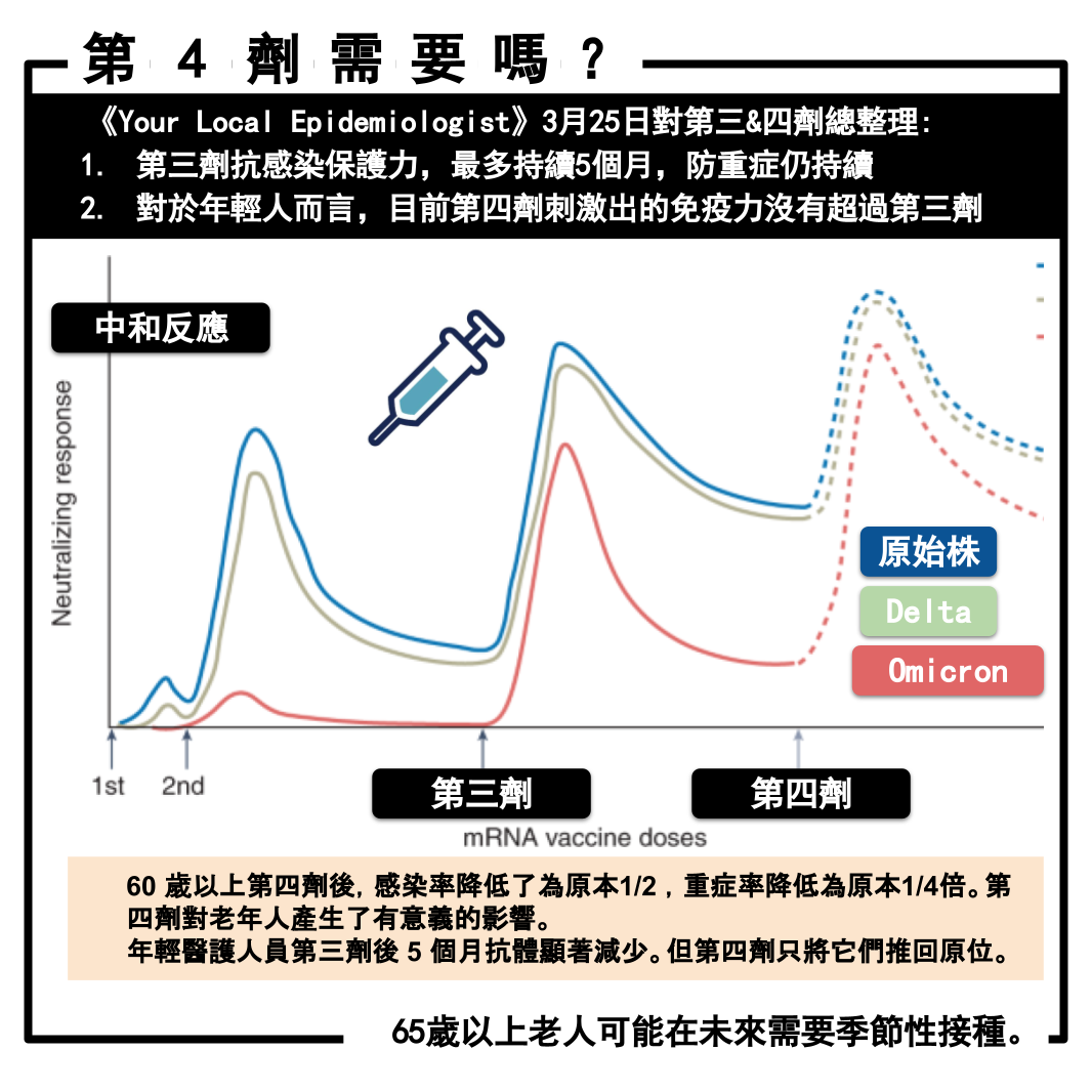 我們想讓你知道…第四劑會不會生在台灣?先說答案是:答案是對年輕人可能已經不需要,但是老人可能從此需要季節性接種。